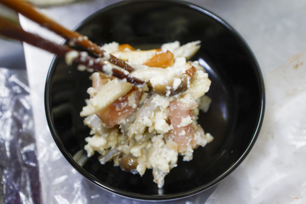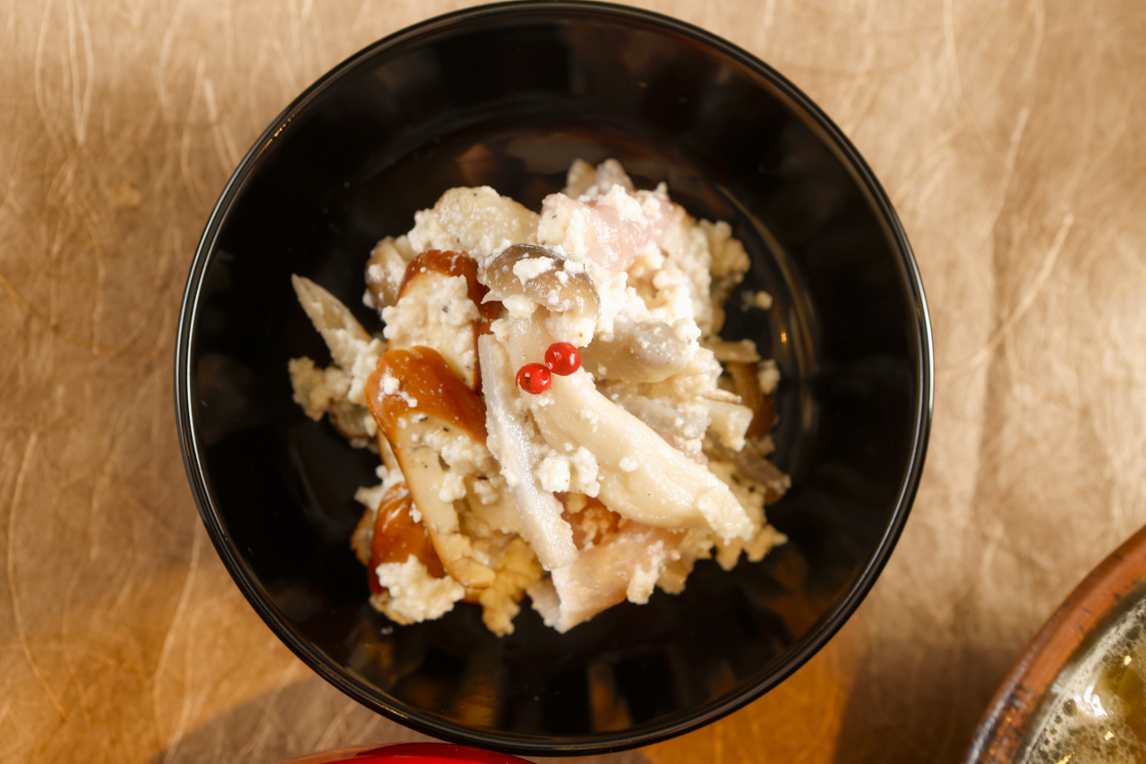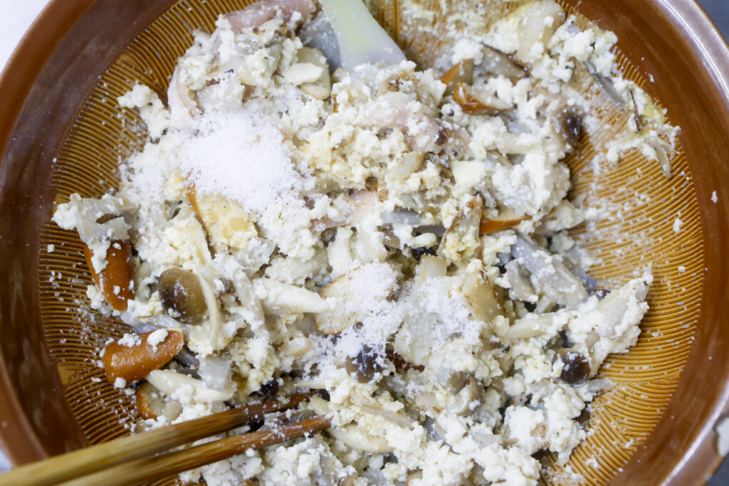 秋の具材を豆腐で和えたおかずです。中身は色々と変えていこうと思っています。