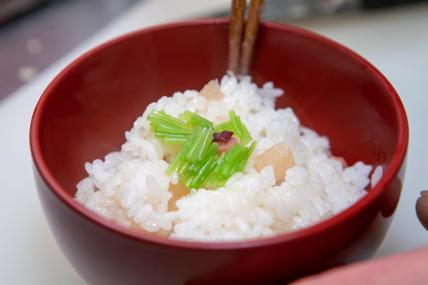 冬が旬な真蛸ですが湯がきますと桃色になりますので此方も節句に因んで混ぜご飯にしました。歯触りが変わる様に細目大根も一緒に入っています。