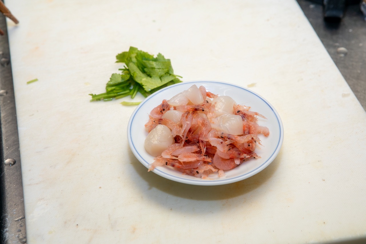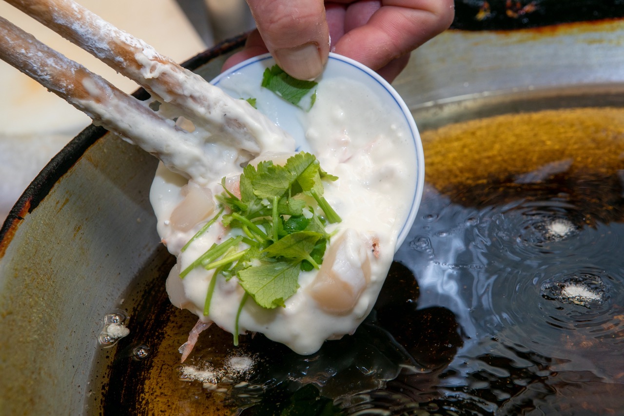 “てっぱい”って名前が不思議ですか?“鉄砲和え”が訛った言葉らしいです。分葱を湯がく時に出るポンポンって音を鉄砲に見立ててついたみたいです。なかなかオツなネーミングですね。お味もオツに仕上げたつもりです。ビシッと辛子も効かせました。旬の魚介も少しだけ参加しています。